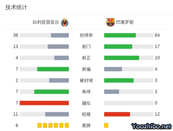 全场结束,巴塞罗那5-1比利亚雷亚尔。