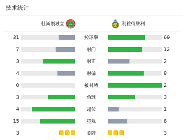 全场比赛结束,利雅得胜利1-1杜尚别独立。