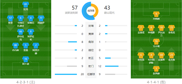 查看:波斯波利斯vs蔚山现代 全场录像 技术统计: