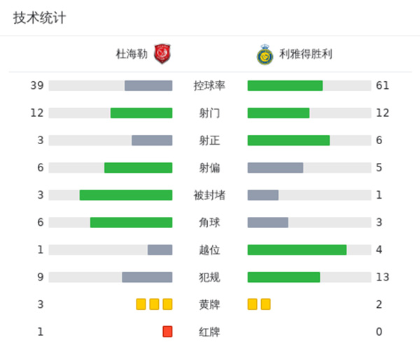 第42分钟,利雅得胜利反超比分!马内右路横传中路塔利斯卡拿球直接远射破门,杜海勒1-2利雅得胜利。