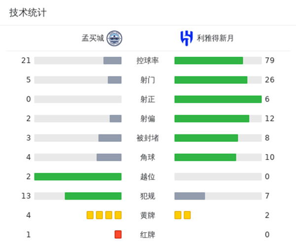 全场比赛结束,利雅得新月2-0孟买城。