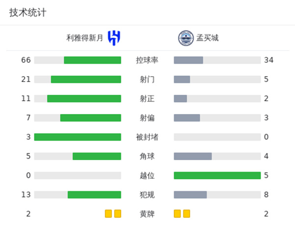 第94分钟,布雷克回做,马尔基外围重炮轰门,皮球击中立柱内侧反弹入网,利雅得新月6-0孟买城! 最终利雅得新月主场6-0大胜孟买城。