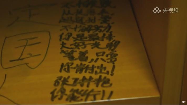 其中一个镜头给到张琳艳在自己的桌上写了一段话:“不怕困难,从头再来,超越孙雯,不懈努力,你是最棒,大好光明等着,只要你肯付出!张琳艳你能行。”