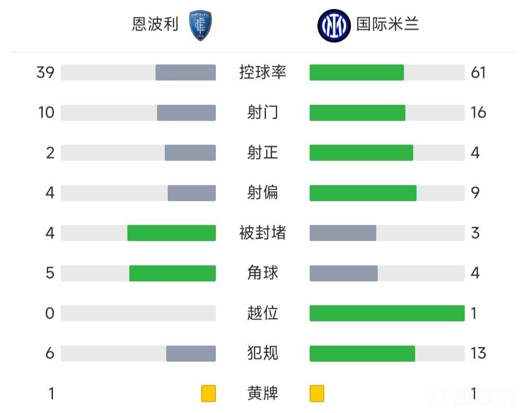 全场比赛结束,国际米兰3-0恩波利联赛近6轮首胜!