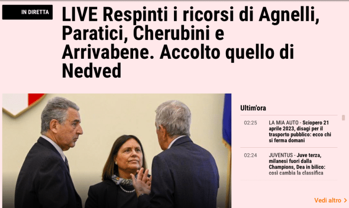 对此不服判罚的尤文,通过意大利奥委会提出了上诉并且取得了成功。如今,尤文的上诉被部分接受,扣掉15分的裁决被无效化,此案将在一个月内被重审。