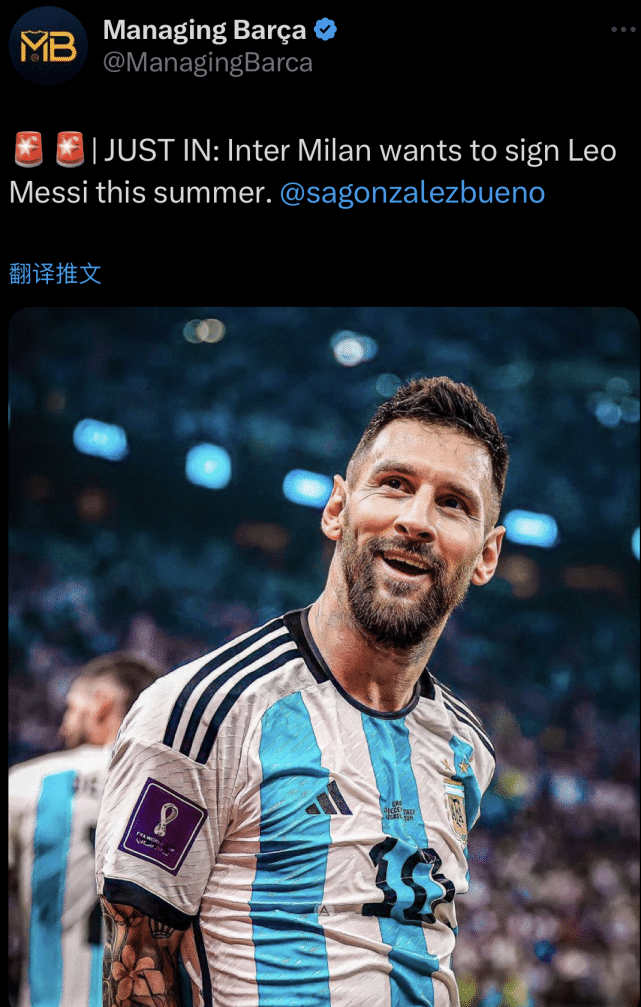 早在梅西当初离开巴萨时,国米就曾是他最热衷的追求者。国米历史上一直都有浓厚的“阿根廷情节”,多位阿根廷球星都在国米取得过辉煌,正因为此蓝黑军团自然也希望将阿根廷最伟大的球星梅西,带到梅阿查球场。