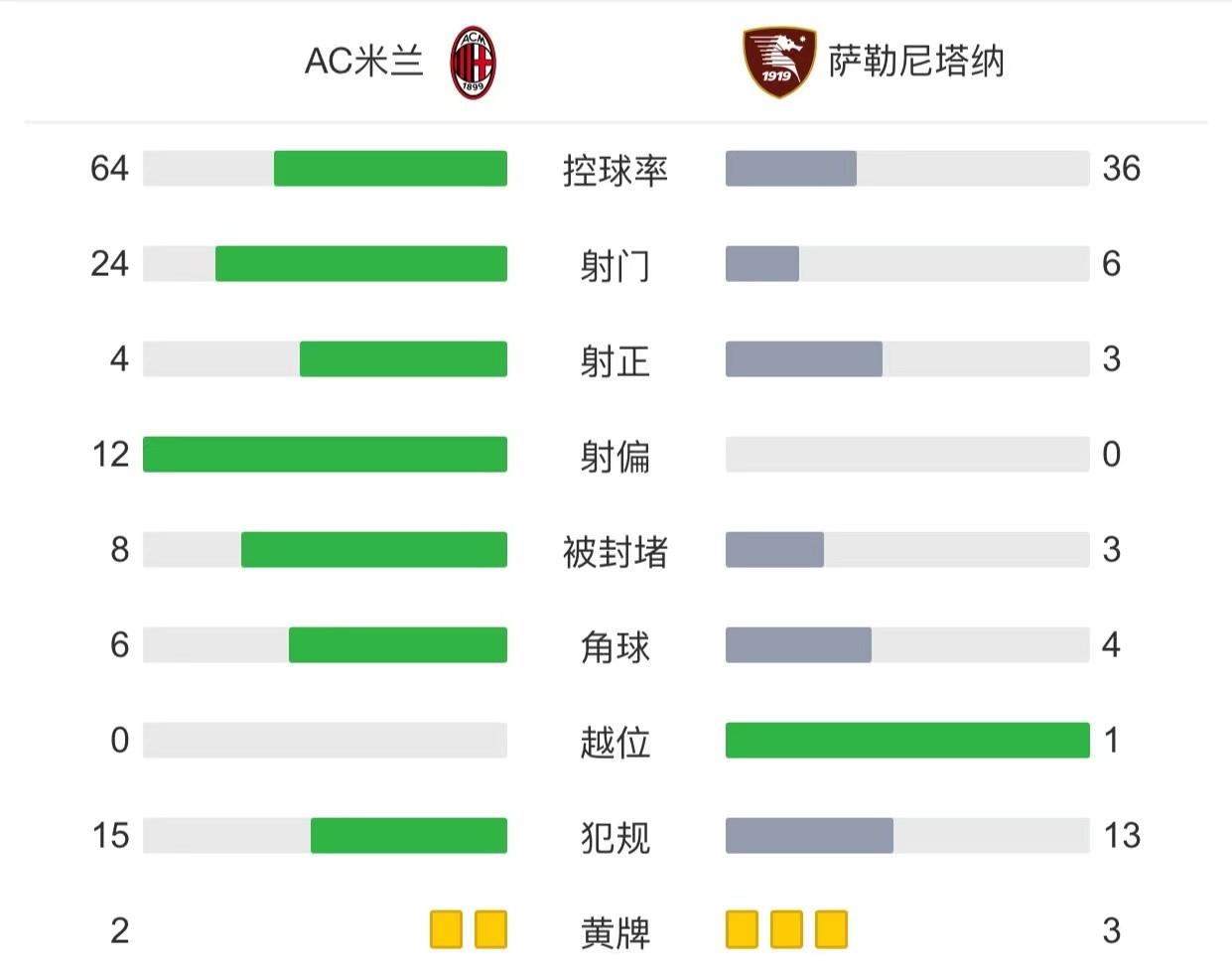 第61分钟,萨勒尼塔纳扳平比分,布拉达尼奇左路斜传禁区迪亚门前无人看防情况下推射破门,米兰1-1萨勒尼塔纳。