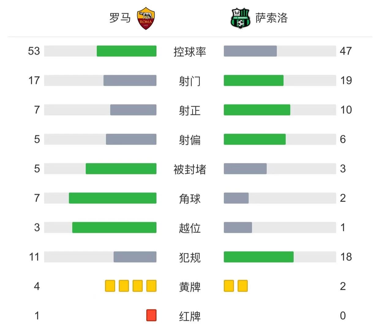 最终罗马主场3-4不敌萨索洛。