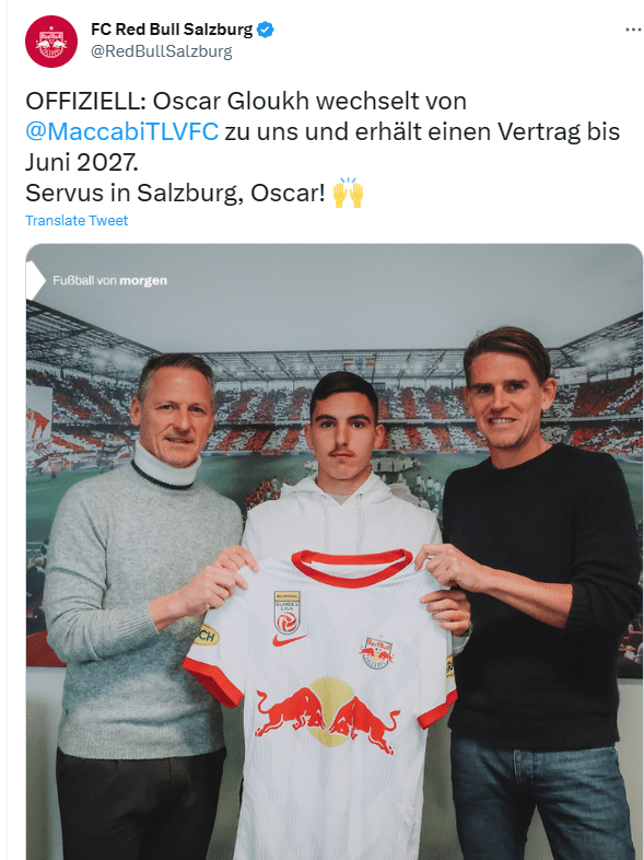 24直播网01月28日讯 萨尔茨堡红牛俱乐部官方宣布,以色列球员奥斯卡·格鲁克加盟球队,签约四年半。