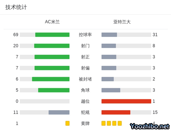 全场比赛结束,最终AC米兰1-1亚特兰大。