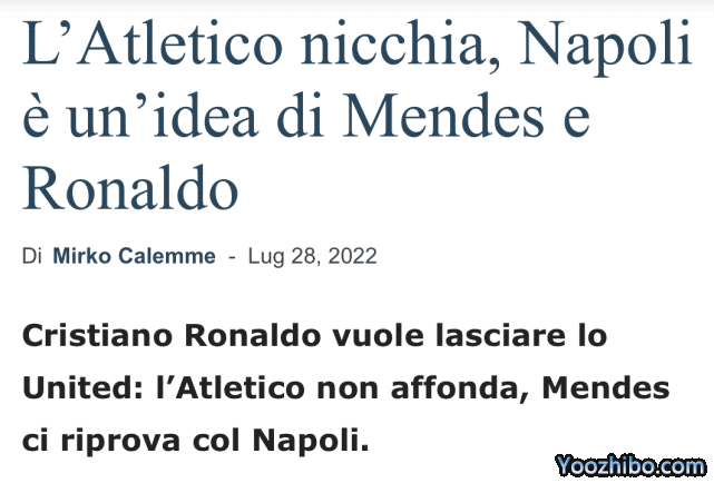 24直播网07月29日讯 ,来自那不勒斯当地记者Mirko Calemme的报道,在前往拜仁切尔西、马竞的希望逐渐变小之后,葡萄牙巨星C罗已经把那不勒斯,视为自己最新的首选下家。
