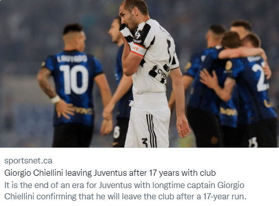 24直播网05月12日讯 今天凌晨,尤文在意大利杯决赛中2-4不敌国米,赛后基耶利尼宣布自己将在本赛季结束后离开斑马军团。