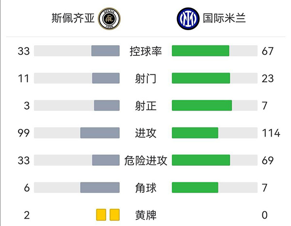 全场比赛结束,国际米兰3-1斯佩齐亚。