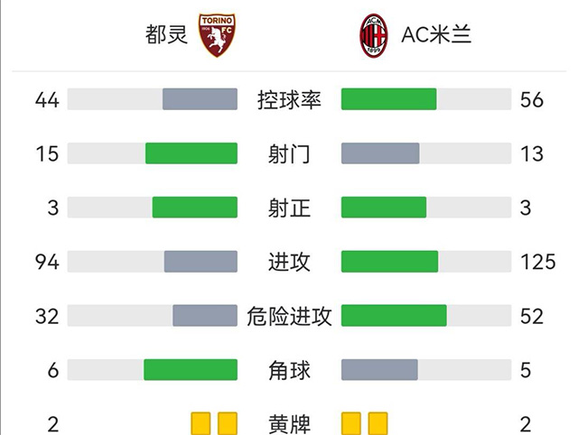 全场比赛结束,米兰0-0战平都灵,仍位居积分榜榜首。