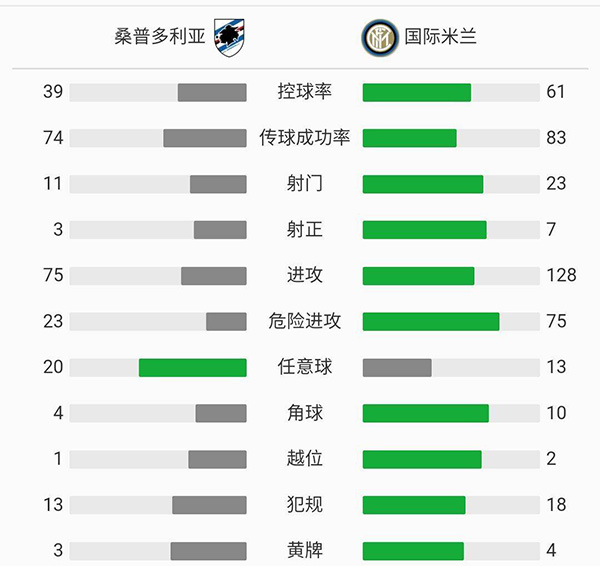 国米1-2桑普多利亚 桑切斯失点两旧将反戈