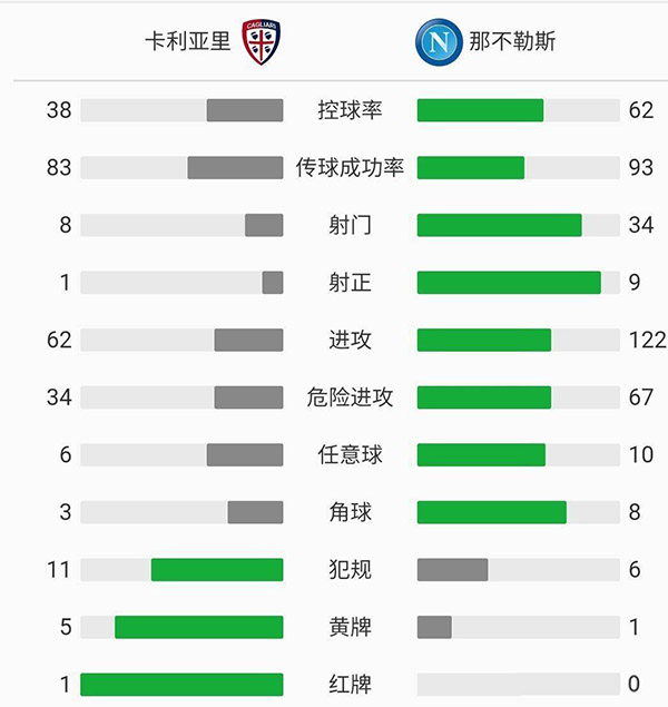 查看:卡利亚里vs那不勒斯 全场录像技术统计: