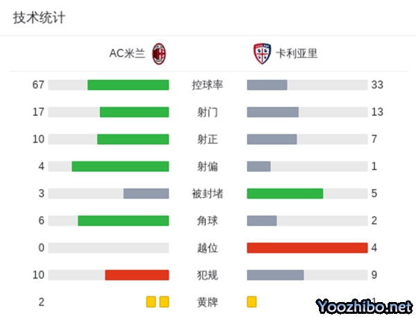 全场比赛结束,米兰5-1大胜卡利亚里