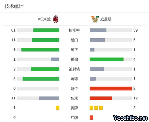最终米兰4-0十人威尼斯取得联赛首胜。