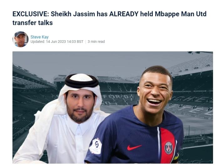 24直播网06月15日,来自知名转会记者Steve Kay独家爆料,竞标曼联的卡塔尔投资方贾西姆,已与姆巴佩展开谈判,希望收购曼联成功后将他带到老特拉福德,作为自己入主曼联后的首笔签约。