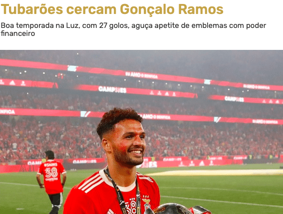 葡媒透露,如果G-拉莫斯今夏转会,那么他最有可能的目的地似乎是曼联。英超豪门已经准备为21岁的葡超神锋支付1.15亿欧元(包括部分进球数据相关的附加条款)——这将是俱乐部的新纪录,超过了2016年为签下博格巴而投资的1.05亿欧元。