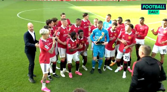 赛后,德赫亚从滕哈格手中接过「金手套奖」,并站在队友中间合影留念。虽然德赫亚赛季中出现过几次失误,但主教练认为他进步更大,是球队整体提升的缩影。