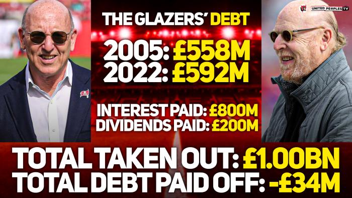 24直播网05月23日曼联老板格雷泽家族收购俱乐部18年以来,从未向球队投入自己的一分钱,相反,他们将「杠杆收购」的5亿英镑债务转移到红魔账上。之后,格雷泽以利息、分红等模式,从曼联拿走了超过10亿英镑。举个例子,格雷泽六兄弟姐妹每年坐享2200万英镑左右负的分红,无论俱乐部盈亏都雷打不动。因此,红魔拥趸将这个家族称为「吸血鬼」。