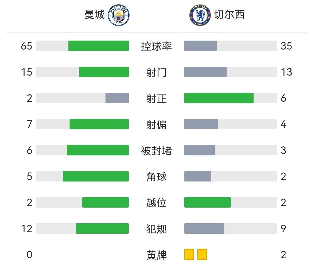 查看:曼城vs切尔西 全场录像技术统计: