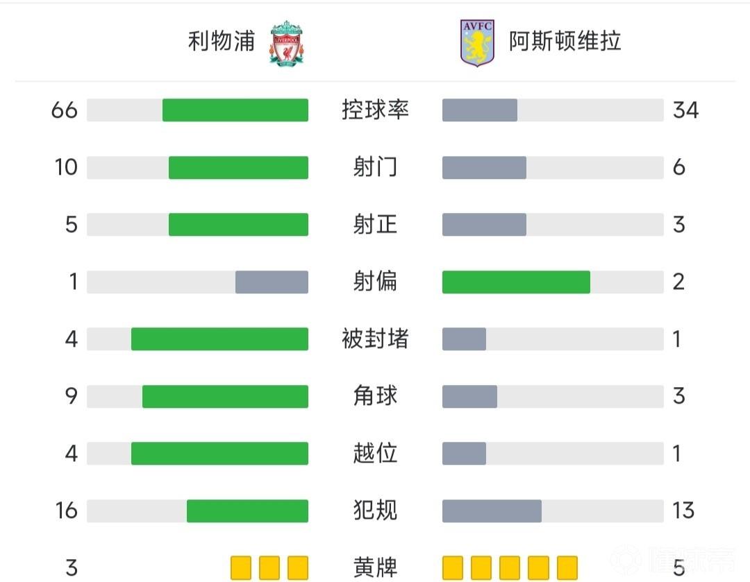 最终,利物浦1-1绝平维拉。