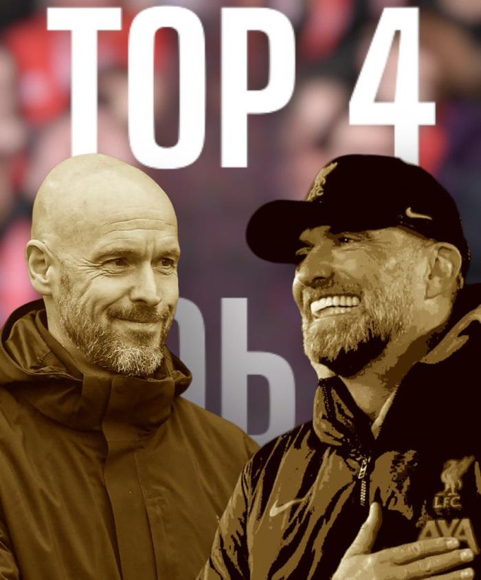 曼联和纽卡斯尔掌握主动权,红魔再拿9分、喜鹊再拿7分,就可以超过利物浦的最高积分71分上限,确保自己在赛季结束时排名前四。但如果出现同分现象,那么曼联将处于劣势,因为滕哈格的球队目前只有8个净胜球,纽卡斯尔多达32个,利物浦也有25个,可以确信剩余的4轮曼联不可能弥补如此大的差距。