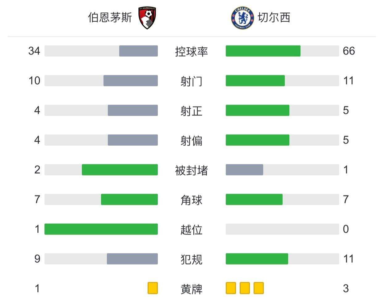 第9分钟,坎特右路传中,加拉格尔头球冲顶破门,切尔西1-0领先伯恩茅斯。