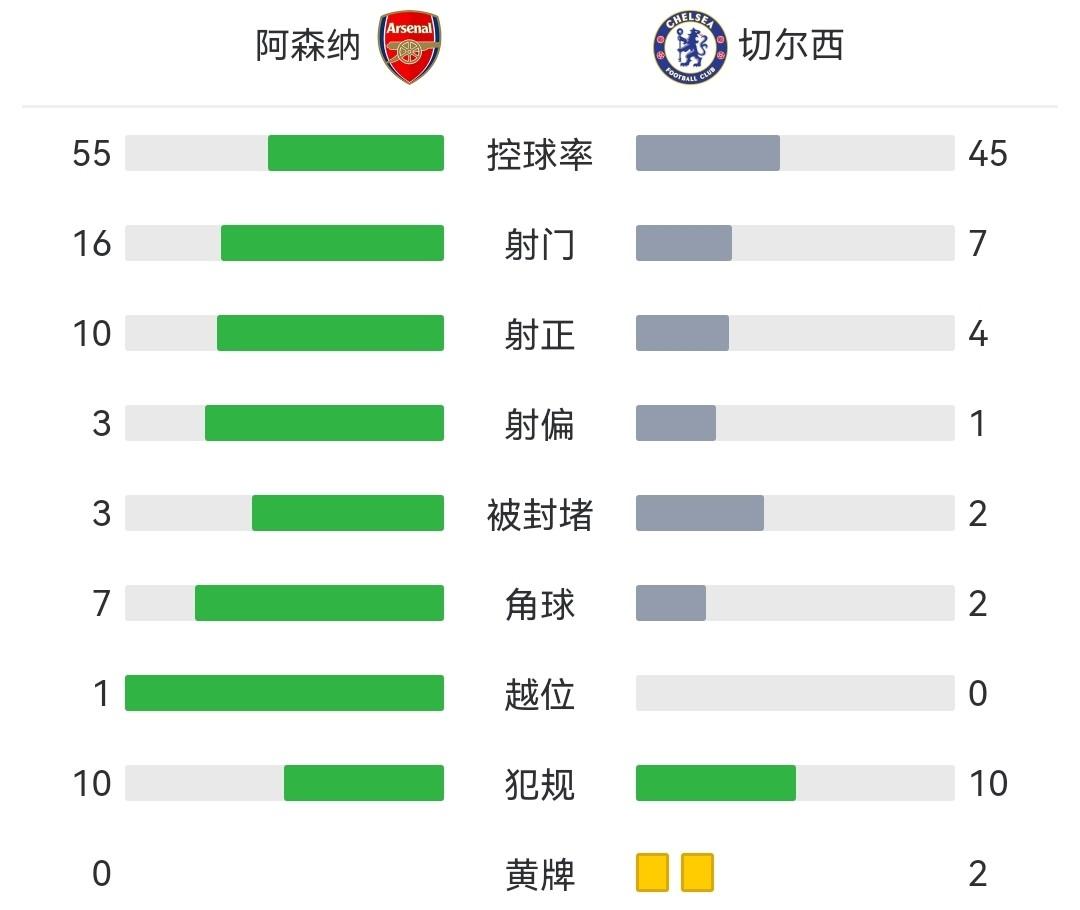 关键事件: 第18分钟,扎卡左路横扫禁区,厄德高不停球迎球推射,皮球击中横梁下沿弹入球门!阿森纳1-0切尔西↓ 第31分钟,扎卡左路横扫禁区,厄德高点球点附近左脚推射破门!跟第一个进球几乎如出一辙!阿森纳2-0切尔西↓ 第34分钟,本怀特右路传到禁区,后点热苏斯胸部停球后做给扎卡,扎卡打门被封堵,热苏斯跟上补射破门!阿森纳3-0切尔西↓ 第65分钟,科瓦西奇中场送出长传,马杜埃凯右路插上突入禁区,左脚推射破门!阿森纳3-1切尔西↓ 全场比赛结束,阿森纳3-1送切尔西六连败!