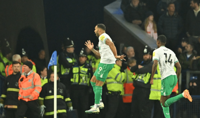 下半场,埃弗顿的防线快速崩塌,9分钟时间内被灌3球。比赛第72分钟,威洛克助攻乔林顿头球破门,埃弗顿0-2落后;比赛第75分钟,威洛克快攻在禁区弧顶接球直接轰出世界波,埃弗顿0-3落后;比赛第80分钟,麦克尼尔角球直接破门,为埃弗顿扳回一球,比分变成1-3;比赛第81分钟,伊萨克一人玩转了埃弗顿4名后卫和一名门将,最终溜底线横传助攻墨菲打空门得手,埃弗顿1-4惨败。