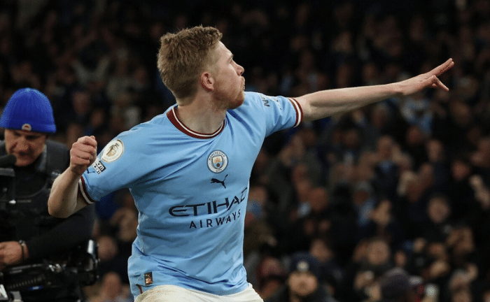 24直播网04月27日讯 英超联赛第33轮,曼城主场对阵领头羊阿森纳,经过90分钟的角逐,曼城展现了冠军相,拿出了卫冕冠军应有的统治力,直接吊打阿森纳,以4-1大胜收场。22岁的天才巨星哈兰德继续暴走,打进1球的同时完成2次助攻,独造3球;德布劳内打进2球助攻1次,后卫斯通斯也打进1球。为阿森纳打进挽回颜面的一球的是后卫霍尔丁。
