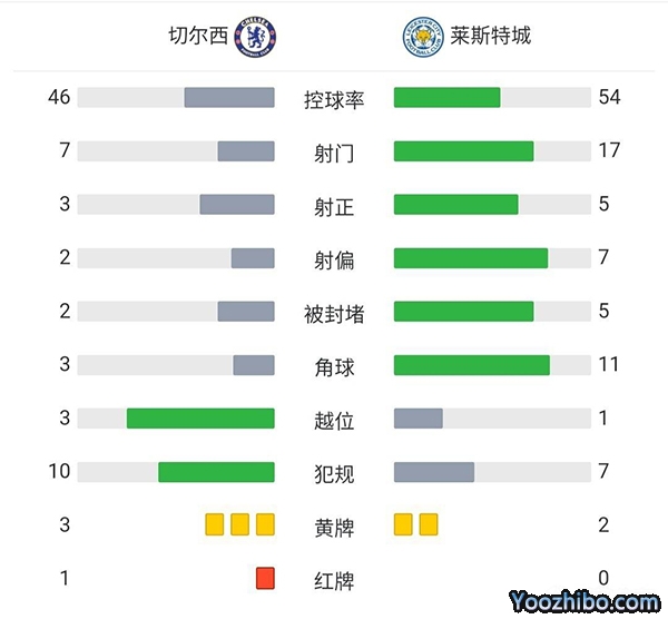 切尔西2-1莱斯特城 斯特林双响加拉格尔28分钟被罚下