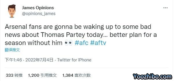 24直播网07月05日讯 《电讯报》今日爆料称,一位英超球员因涉嫌强奸在北伦敦被捕,而有球迷发现,在消息出来的10个小时前,有一名推特用户表示阿森纳本赛季将没有中场托马斯-帕特耶可用。