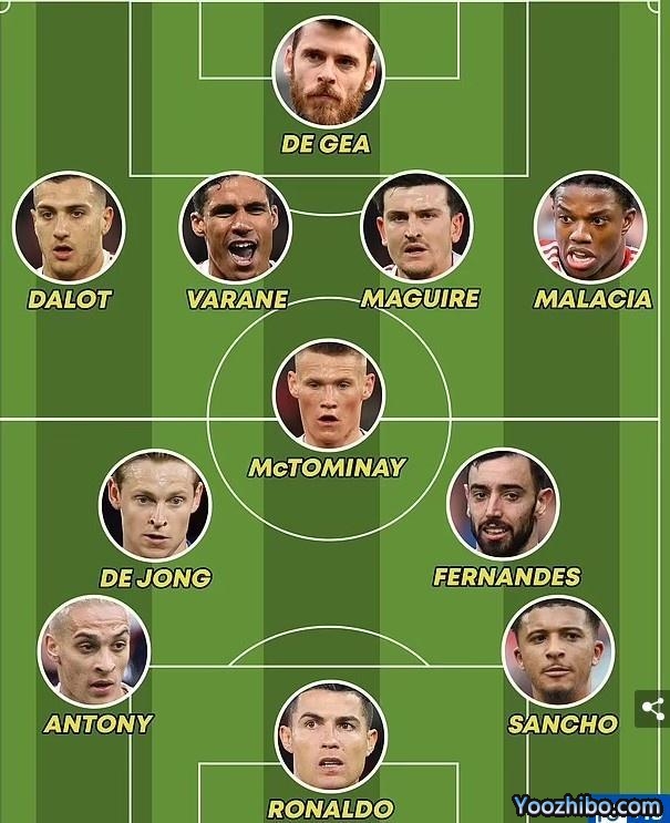 后卫:达洛特、瓦拉内、马奎尔、马拉西亚