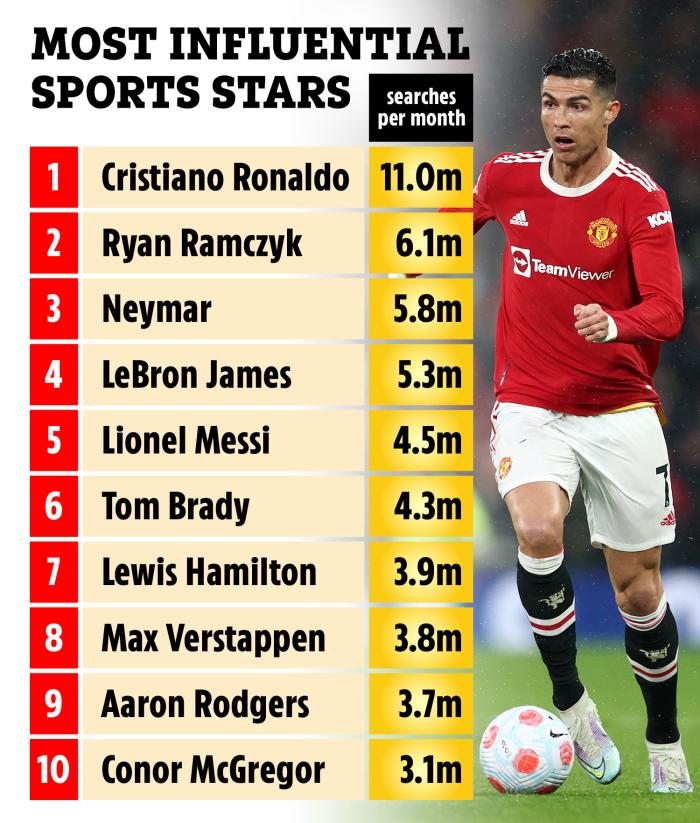 一项统计数据显示,C罗是体坛搜索量最高的球员,平均每个月有1100万人查询他的资讯,比内马尔(580万)和梅西(450万)相加还要多,美式足球明星拉姆齐克(Ryan Ramczyk)和篮球小皇帝勒布朗·詹姆斯也得望其项背。因此,曼联在赛季前的商业之旅中,依然迫切需要发挥C罗的票房号召力。