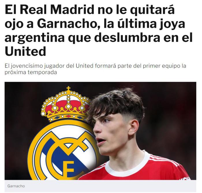 24直播网06月22日讯 据西媒报道,曼联左边锋亚历杭德罗·加纳乔在阿根廷队得到梅西的认可和称赞后,皇家马德里正在密切关注其情况,可能伺机从红魔挖走他。