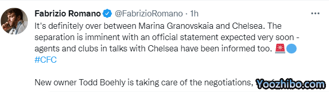 24直播网06月21日讯 据罗马诺报道,切尔西很快就会官宣总监玛丽娜-格拉诺夫斯卡娅离任的消息,俱乐部新老板陶德-伯利正在负责续约和转会谈判。