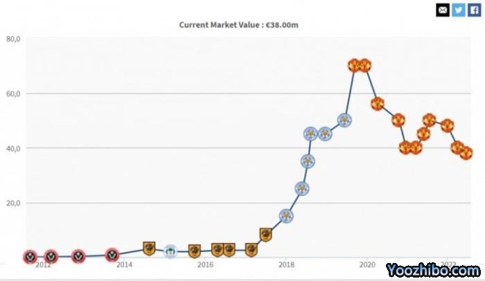24直播网06月16日讯 据德国转会市场消息,马奎尔的身价已经降至3800万欧元,这是他转会曼联以来的最低身价。