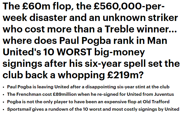 24直播网06月03日讯 《每日邮报》今天盘点了曼联英超时代最糟糕的十笔引援,桑切斯、迪马利亚和博格巴分列前三。