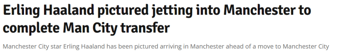 24直播网05月25日讯 据《每日邮报》、《曼彻斯特晚报》等媒体报道,哈兰德已乘坐私人飞机抵达曼彻斯特,他即将完成与曼城的签约工作。