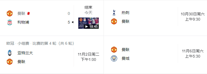 24直播网10月25日讯 今天凌晨,曼联在英超主场0-5惨败死敌利物浦,博格巴染红,接下来红魔将接连迎战热刺、亚特兰大和曼城。