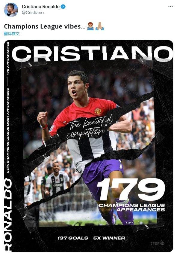今日C罗在社媒上也秀了一把,并写道:欧冠气氛...