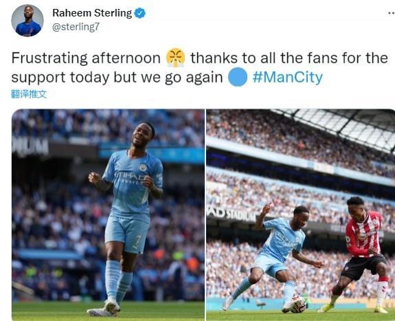 赛后,斯特林在个人社交媒体上发文:“一个令人沮丧的下午。感谢所有球迷今天的支持,我们会重新出发。”
