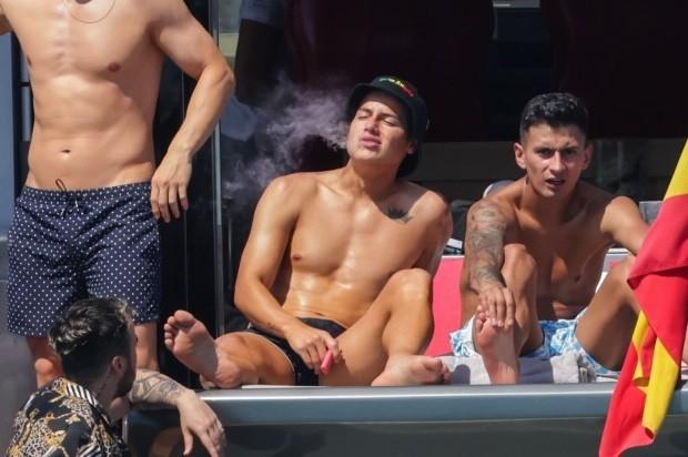 24直播网9月06日讯 昨天5日晚,效力于英超埃弗顿队的哥伦比亚巨星哈梅斯-罗德里格斯(J罗)在个人社交账号上晒出了自己与好友的惬意度假照。J罗与好友来到了西班牙的伊维萨岛度假,在J罗晒出的照片中,他穿着沙滩裤,戴着渔夫帽,赤膊秀出大好身材,十分悠闲轻松。而游艇上,除了J罗和他的好友之外,还有诸多颜值颇高的美女环绕左右。