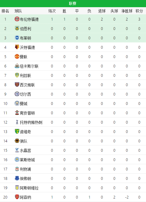 队史首次登顶英超积分榜榜首;