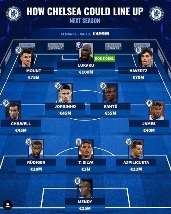 24直播网讯 北京时间8月13日,切尔西官宣卢卡库回归,德转也预测了新赛季蓝军的豪华阵容,总身价高达4.99亿欧。