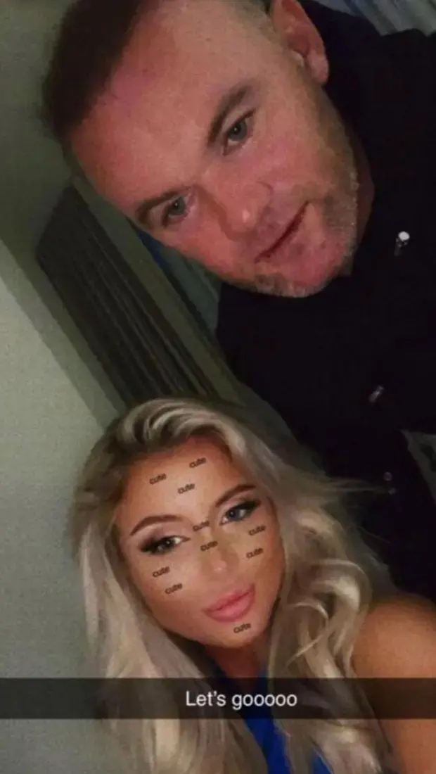 在这些照片中,身穿黑色卫衣和黑色牛仔裤的鲁尼似乎坐在椅子上睡着了,而背景中的床上躺着一个半裸的女子,另一个女子则在镜头前比着剪刀手,吐着舌头,从窗帘透出的光线来看,照片应该是在白天拍摄,但不知道是在酒店还是私人住处。
