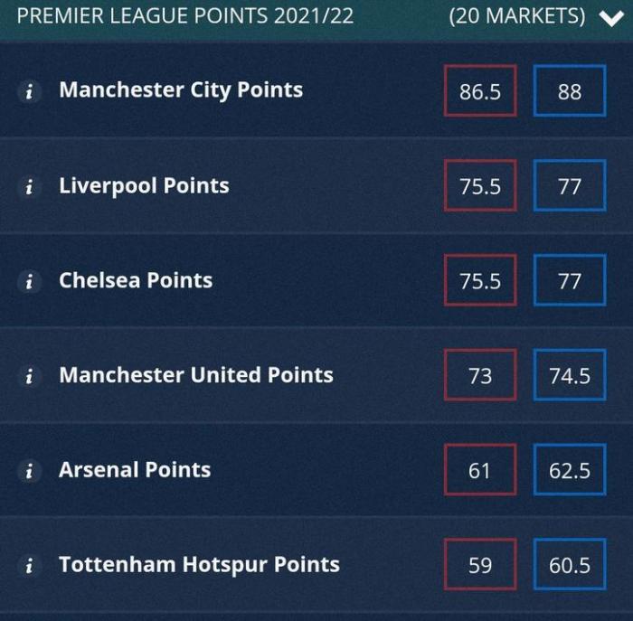 24直播网7月15日讯 ,据《镜报》报道,SportingIndex的超级计算机预测了下赛季的积分排名。根据超级计算机的预测,曼城将问鼎英超冠军,利物浦、切尔西和曼联位列2-4名,枪手排在第五。